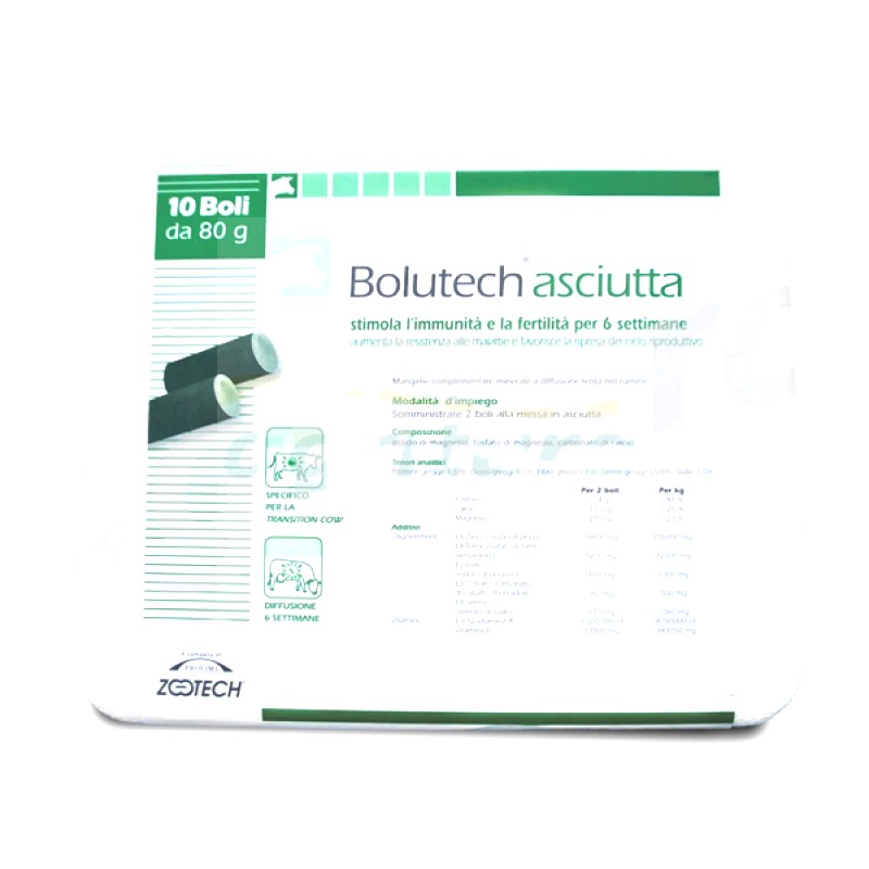 Bolutech asciutta rafforza il sistema immunitario e stimola l’apparato riproduttore fin dal primo giorno di asciutta.